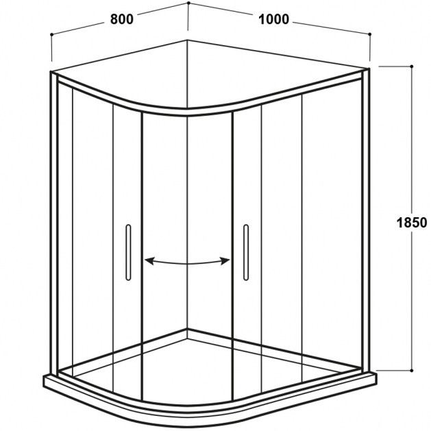 1000 x 800mm Offset Quadrant 2 Door Enclosure - Kaso By Voda Design Black