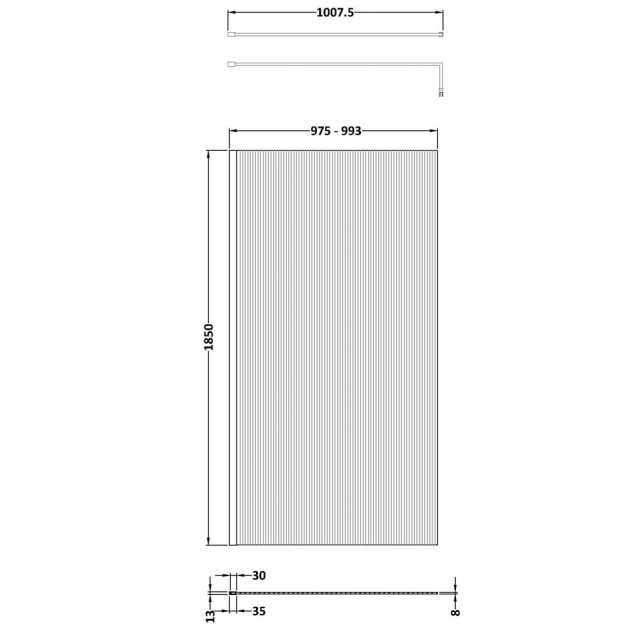1000mm0 Fluted Wetroom Screen Inc' BAR - V-WETFRL18510BB Brushed Brass