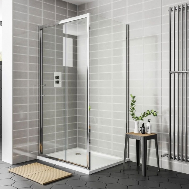 The 6mm Sliding Door with Side Panel is a practical and stylish enclosure that maximises the illusion of space. The Sliding Door is 1850mm high, has 6mm toughened safety glass and features high performance rollers.