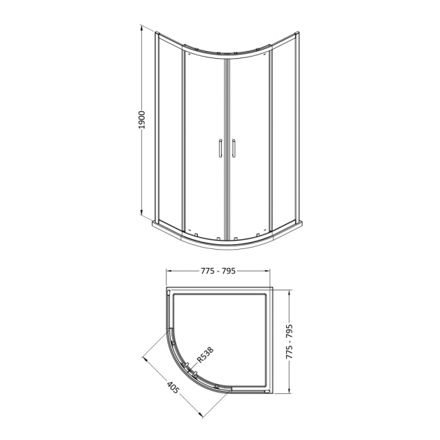 1900 x 800 x 800mm Quandrant Shower Enclosure - V-QD8BP-6 Matt Black