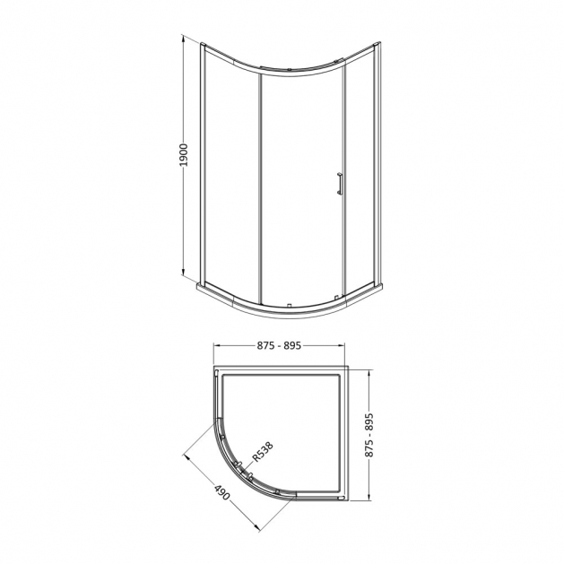 1900mm x 900mm Single Entry Quadrant - Brushed Brass - V-SING9E1BB-6 Brushed Brass
