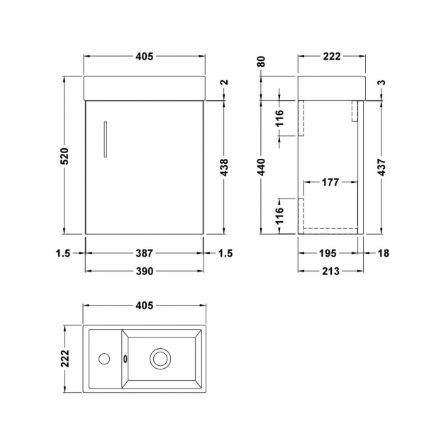 400mm W/H Minimalist Compact Unit & Basin - Gloss White (CLOAK001) Gloss White