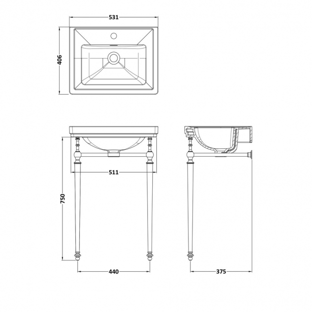 500mm 3TH Basin With Traditional Stand - VBAS010 White