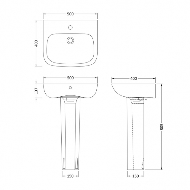 500mm Basin & Pedestal - VBAS015 White