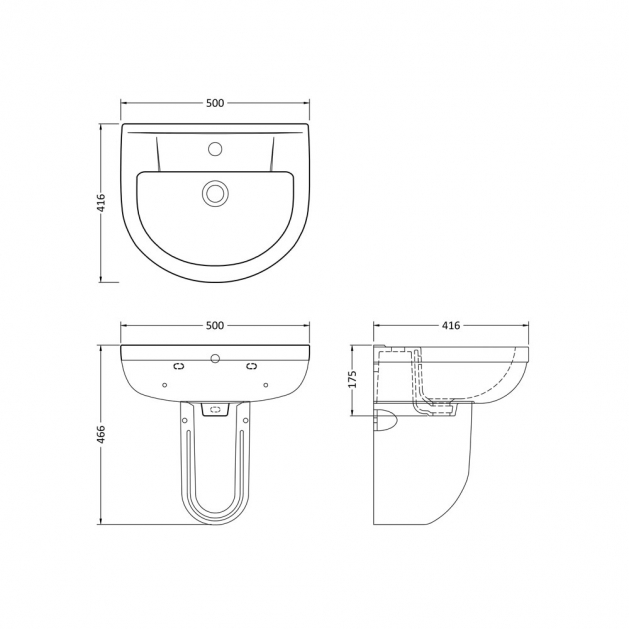 500mm Basin & Semi Pedestal-VSEMI2 White