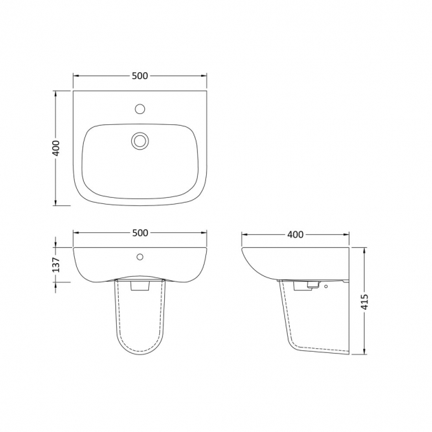 500mm Basin & Semi Pedestal-VSEMI6 White