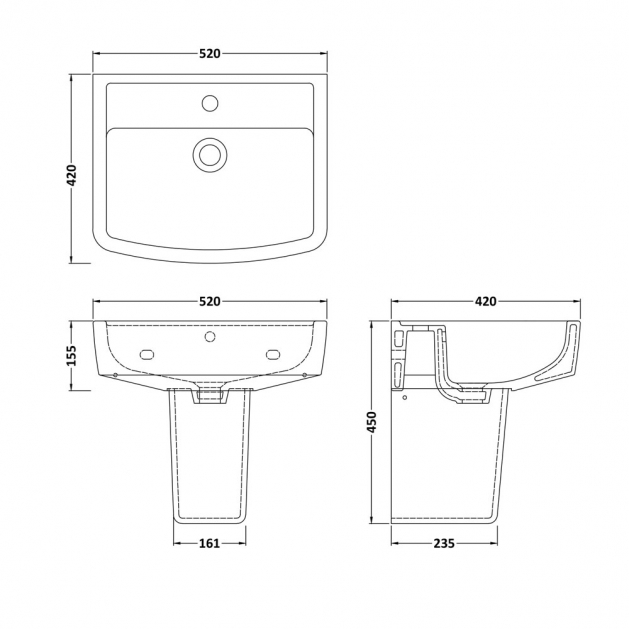 520mm Basin & Semi Pedestal-VSEMI1 White