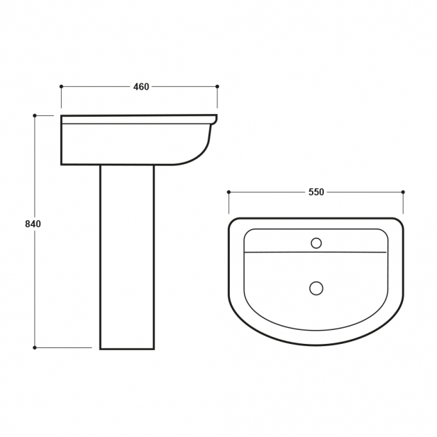 550MM MODERN 1 TAP HOLE BASIN AND PEDESTAL