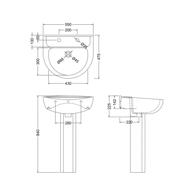 550mm 2TH Basin & Pedestal - VBAS013 White