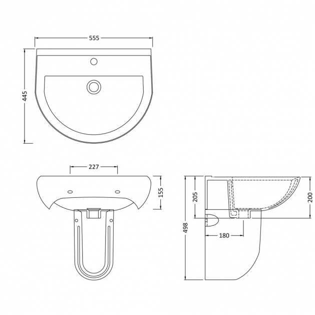 550mm Basin 1TH & Semi Pedestal-VSEMI3 White