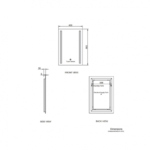 Measuring 600mm X 400mm, the Parallel LED Mirror has a modern rectangular shape and is a portrait-hung mirror which comes with in-built energy-efficient LED lighting activated by a handy touch sensor. The mirror also comes with an IP44 rating as standard, so is splashproof and ideal for bathroom use.
