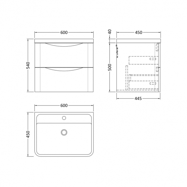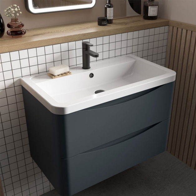 600mm W/H 2-Drawer Unit & Polymarble Basin - Soft (ISLA006) Black