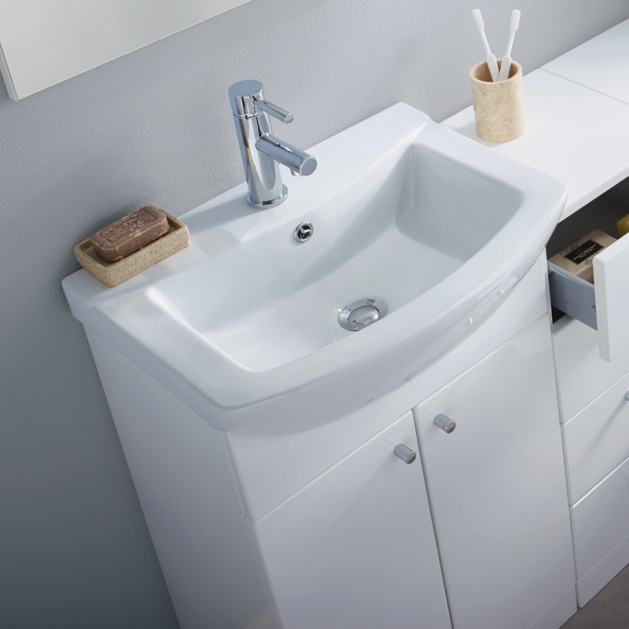 The modern and sophisticated 650mm Vanity Unit boasts luxurious 18mm carcasses, matching carcass interior, internal adjustable shelf and soft close doors for a quieter closing, limiting daily wear and tear. The range is available in; White Gloss, Pearl Grey Matt, Dove Grey Gloss, Bodega Grey or Charcoal Grey Gloss – choose the perfect size and colour for you