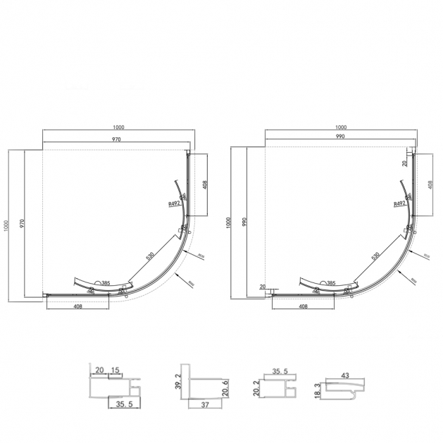6mm 2 Door sliding Quadrant Enclosure 1000mm - Brushed Brass Brushed Brass