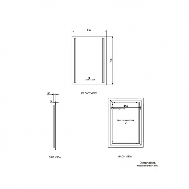 Measuring 700mm X 500mm, the Trax LED Mirror with Demister is a portrait-hung mirror with energy-efficient LED lighting and a stylish modern rectangular design. A touch sensor activates the lighting feature, while the demister pad clears the glass of condensation for your convenience during showering or bathing. It also comes with an IP44 rating as standard, so is splashproof and ideal for bathroom use.