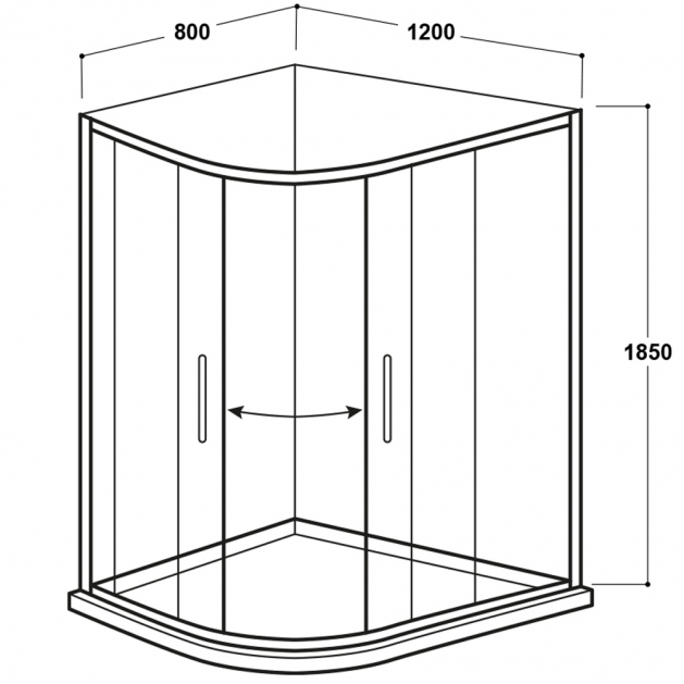 800 x 1200mm Offset Quadrant Black 2 Door Enclosure - Kaso Black By Voda Design Clear