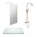 The bundle includes an 800mm wetroom screen with brushed brass profile, delivering a sleek frameless appearance with a warm metallic finish that adds instant elegance. The brushed brass frame creates a refined statement piece, perfect for pairing with contemporary neutral tones, marble finishes, and luxury interiors.