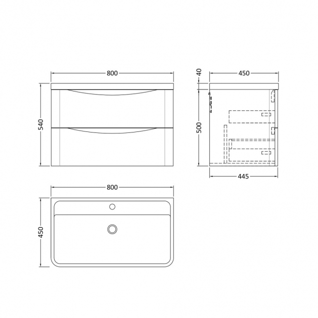 800mm W/H 2-Drawer Unit & Polymarble Basin - Soft (ISLA012) Black