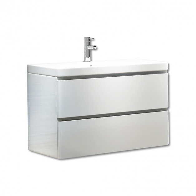 This white gloss wall hung vanity unit features two drawers with one tap hole. The handle-less design gives a modern feel and allows for easy cleaning and maintenance.