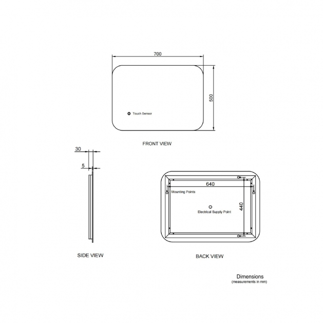 800mm x 600mm LED Mirror With Demister Technology Clear