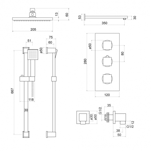 Adda Concealed Thermostatic Shower Set - By Voda Design Chrome