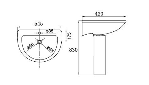 Dimensions of Basin & Pedestal - a line drawing is also included on the listing