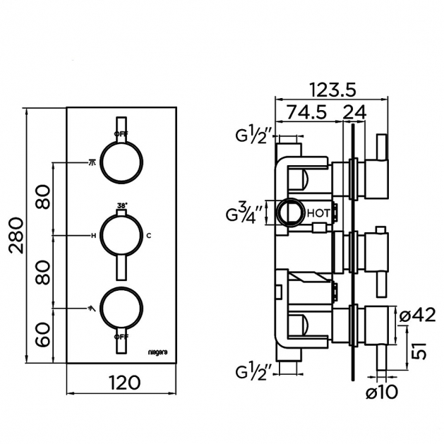 The thermostatic mixer delivers precise temperature control for safe and comfortable showers, while the concealed design ensures a clean, uncluttered look. The overflow bath filler provides a stylish and space-saving way to fill your bath without the need for a separate tap set, completing the coordinated design.