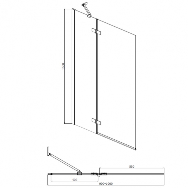 Aqualux 6mm 2 Panel Hinged Bath Screen 1500x1000 Chrome