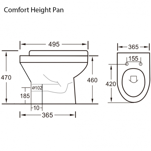 Back To Wall WC Pan (Standard & Comfort Height) With Soft Close Seat