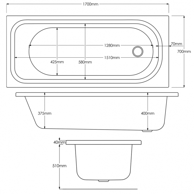 Arley Single Ended Bath Eco with Twin Grip 1700x700mm