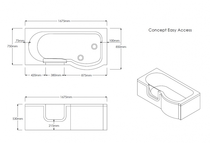 Bathe Easy Concert P-Shape Easy Access Bath (1675x850x750)