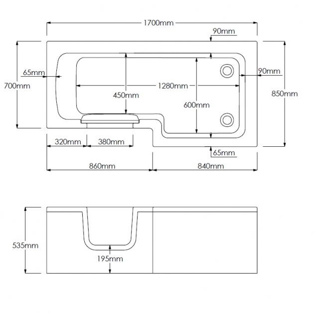 Bathe Easy Solarna L-Shape Easy Access Bath (1700x850x700)