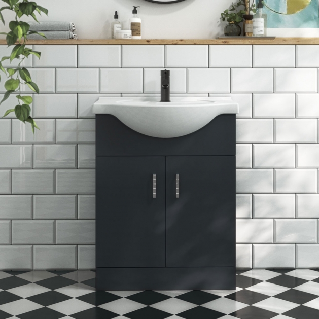Black 650mm 2 Door Floor Standing With Basin - Oslo By Voda Design