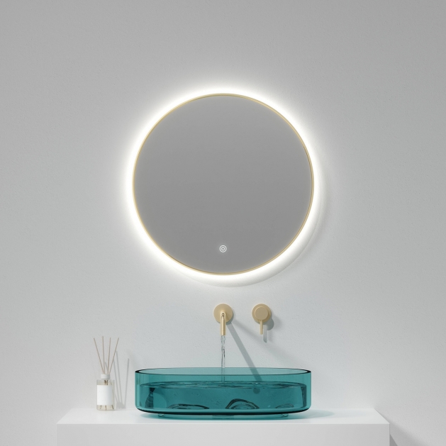 Brushed Brass 600mm Round Backlit Mirror with Colour Change Brushed Brass