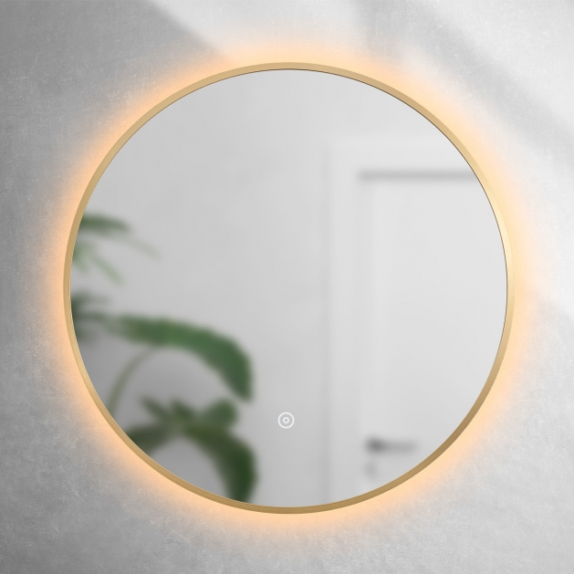 Brushed Brass 600mm Round Frame Mirror with Colour Change