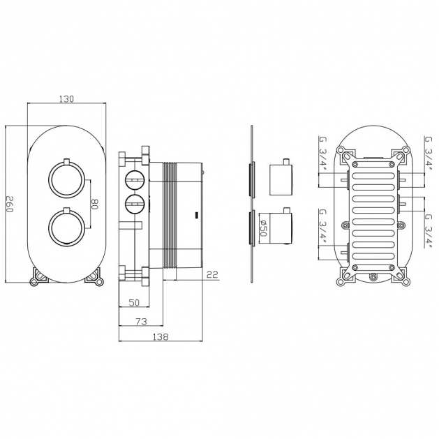 Brushed Brass Twin Concealed Shower Valve - By Voda Design