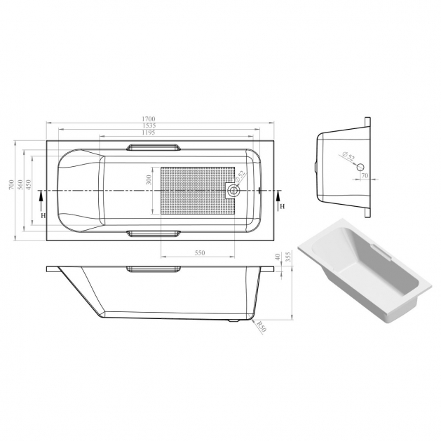 Clayton Gripped 1700x700mm Twin Grip Bath SUPERCAST Re-enforced 0 Tap Holes White