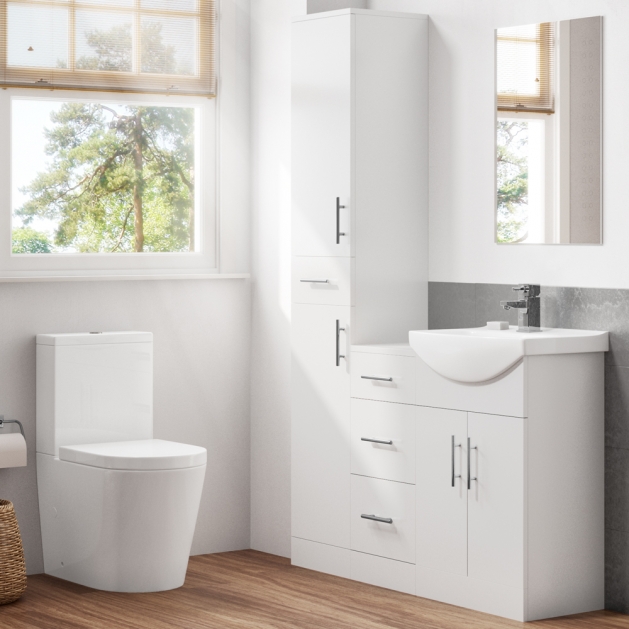 The modern close coupled toilet features the latest rimless technology. Traditionally, water is released from the rim around the top of the toilet pan which can lead to a build-up of germs as the rim can be hard to clean. The new rimless pan has a smooth interior and water is projected from the back of the toilet all the way around the pan and down into the bowl, washing away any germs.