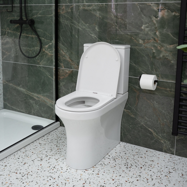 Experience the perfect blend of style and comfort with our modern comfort height back to wall toilet, featuring a soft close seat for added convenience. Designed to enhance any bathroom, this sleek toilet boasts a contemporary aesthetic that complements both minimalist and traditional interiors. The comfort height design offers a taller seat, making it easier for users of all ages to sit down and stand up with ease. With a fully back to wall installation, it maximises floor space and simplifies cleaning by eliminating gaps. Crafted from high quality materials, this toilet ensures durability and efficient performance, making it an ideal choice for any home.