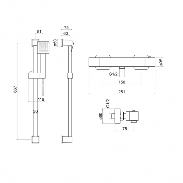 Dee Square Exposed Bar Valve Shower Set - By Voda Design Chrome