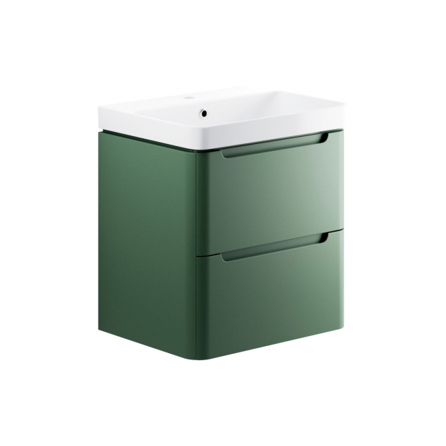 Freedom 605mm 2 Drawer Wall Hung Basin Unit - Matt Sage Green