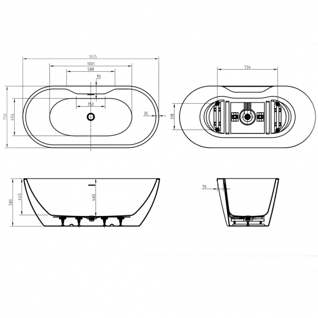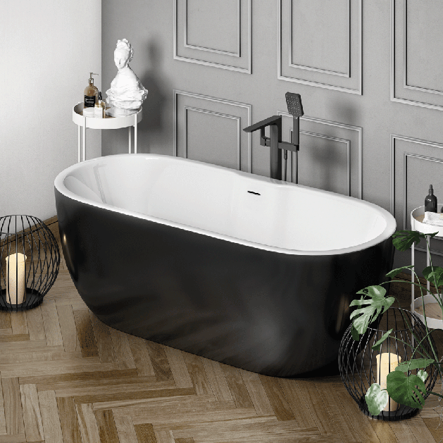 Freestanding Modern Double Ended Bath (Black) - Manhattan By Voda Design 1655mm White