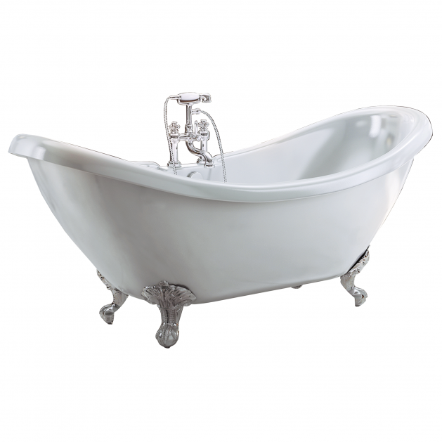 The bath features silver legs on top of a beautifully curved bathtub, a perfect statement piece for your traditional bathroom.