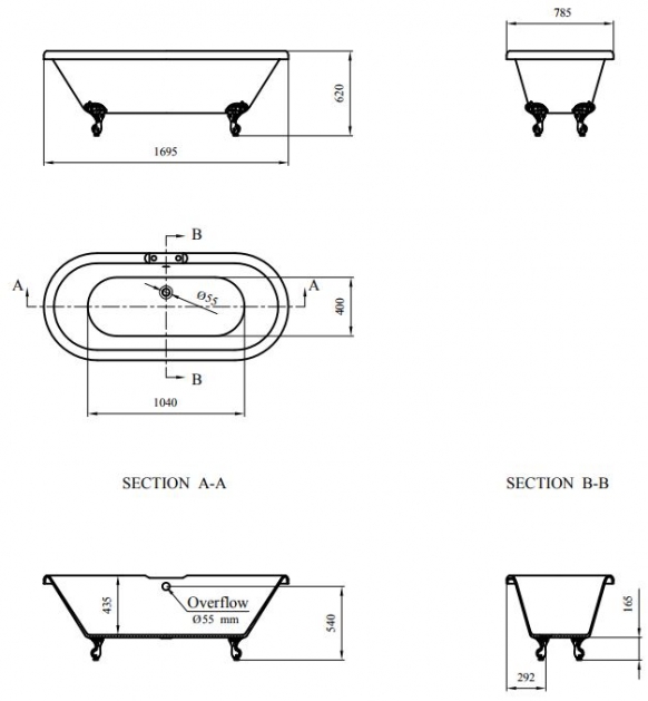 Freestanding Traditional Roll Top Bath - Wilmslow By Synergy