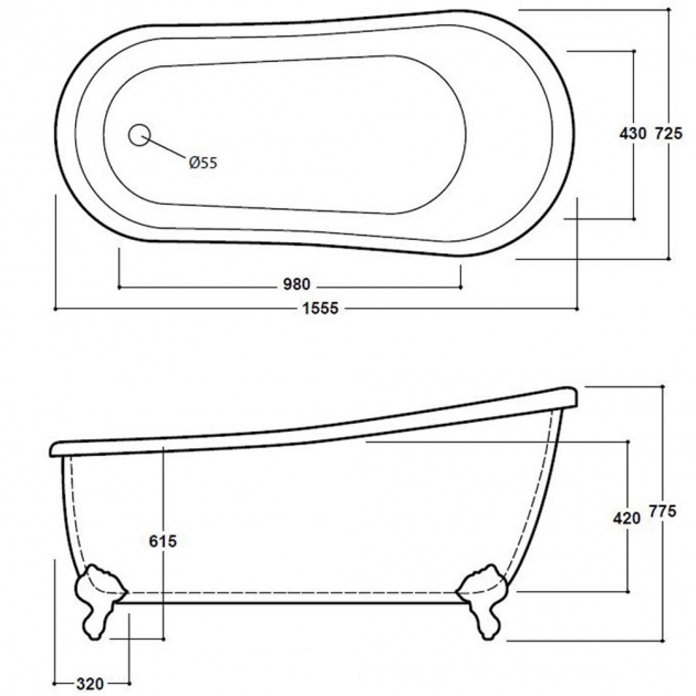 Freestanding Traditional Slipper Bath With Ball And Claw Feet - Belgravia By Voda Design 1555mm White