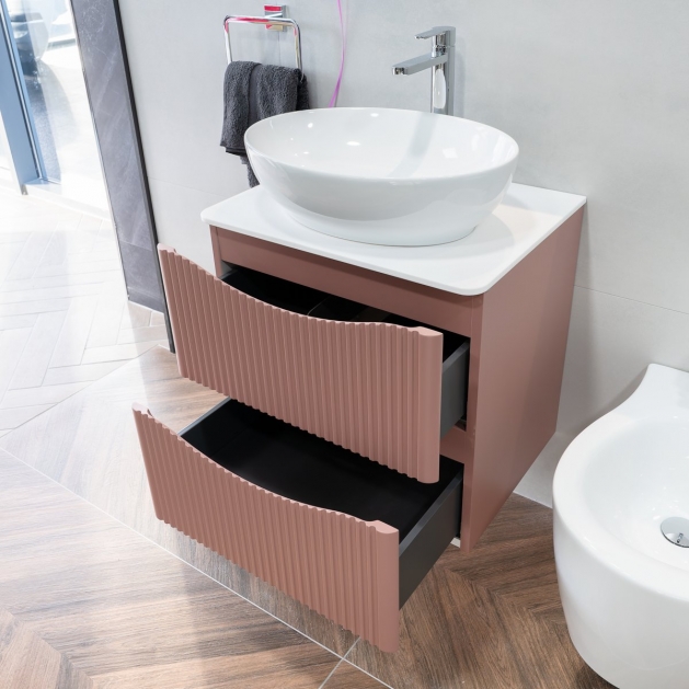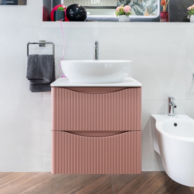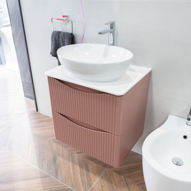 Full Fluted 600mm Floor Standing Vanity Unit & Inset Basin - Rose Pink (By Voda Design)