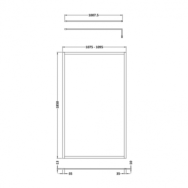 1100mm Full Outer Frame Wetroom Screen - Black - V-WETFRBB1811 Matt Black