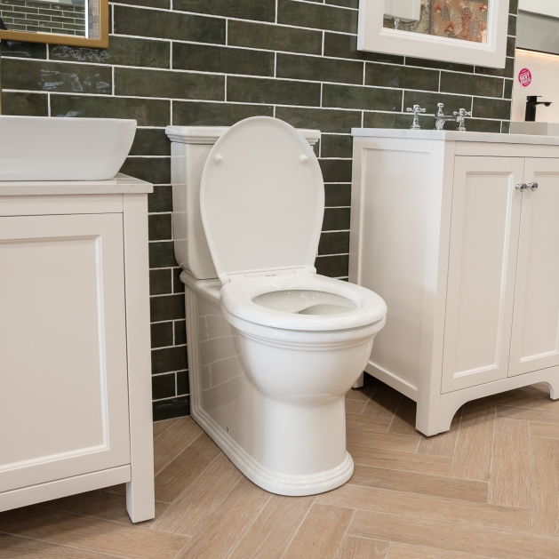 Our Rimless Fully Back to Wall Toilet with Soft Close Seat combines timeless style with practicality, making it an ideal addition to traditional bathrooms. Part of the distinguished Windsor range, this toilet has a robust ceramic construction for enduring quality and elegance. The rimless design ensures easier cleaning and a more hygienic finish, while the soft-close seat and chrome-plated hinges add comfort and durability. WRAS approval attests to its quality and water efficiency, and the convenient push-button flush provides ease of use. With a 5-year manufacturer's warranty, this toilet is a stylish, reliable choice for classic bathrooms.