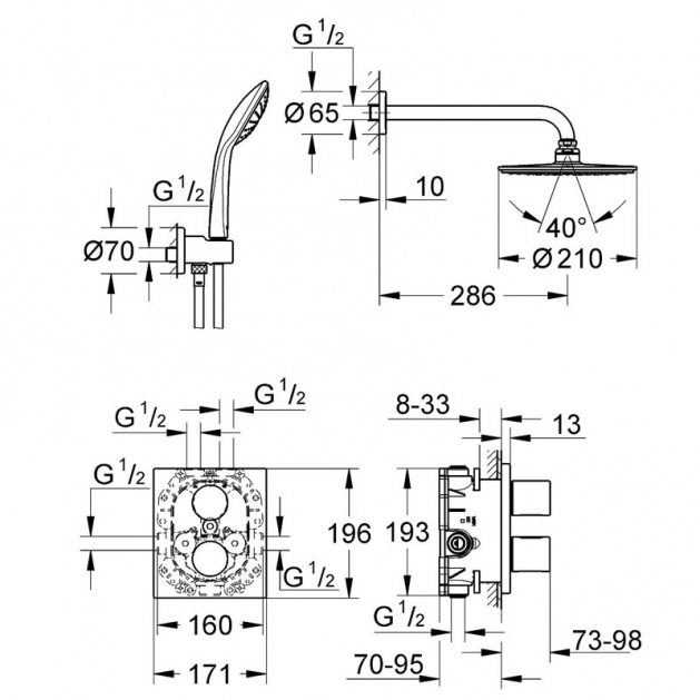 Grohtherm 3000 Mixer Shower with Rainshower Head - Cosmopolitan Perfect shower set 210 Chrome