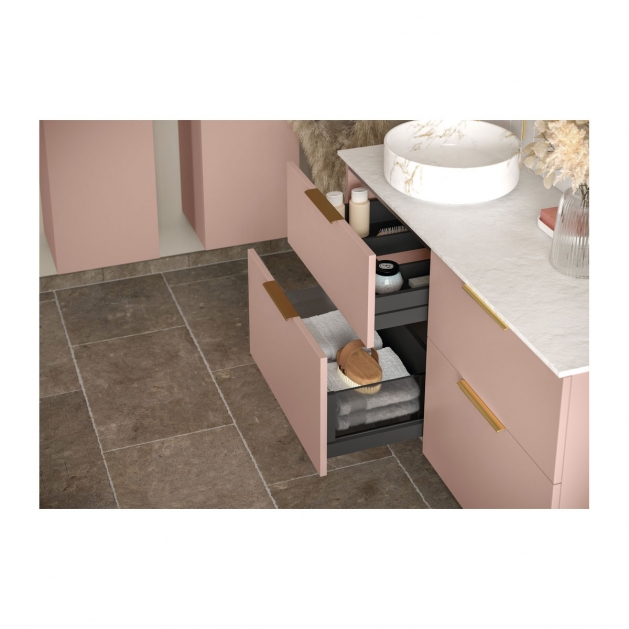 - Grass branded drawer runners and 8mm smoked black glass side panels